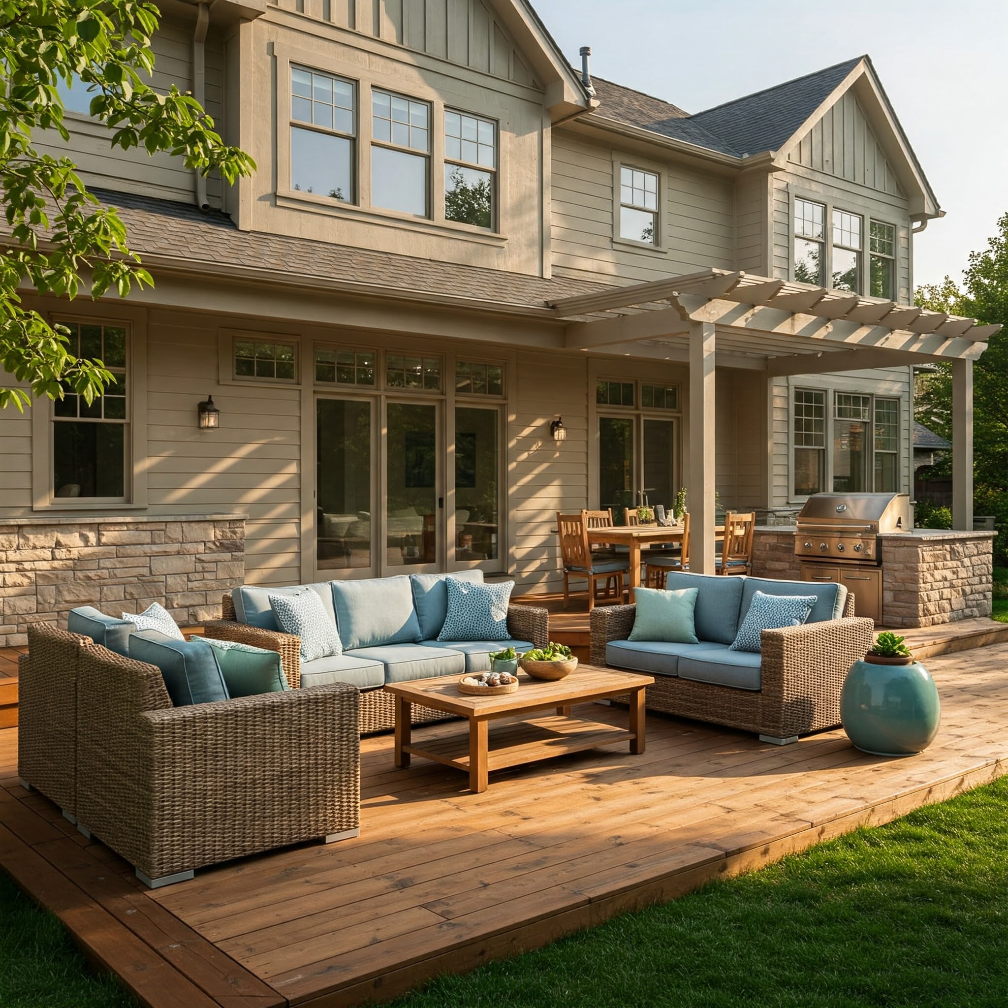 Functional outdoor spaces have become a top priority for homebuyers. Adding features like patios, fire pits, and pergolas can yield an ROI of 100-200%, according to a study by the National Association of Landscape Professionals. Outdoor kitchens, weatherproof seating areas, and covered patios further enhance usability, transforming backyards into extensions of the home’s living space.
