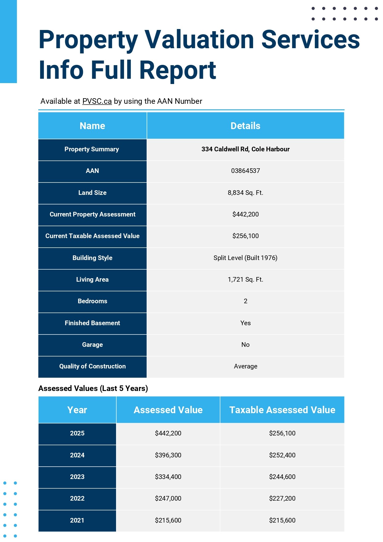 A clear, evidence based report built for Nova Scotia property assessment appeals. You upload your PVSC notice, we analyze the assessment against local market evidence and give you a PDF you can submit with your appeal.